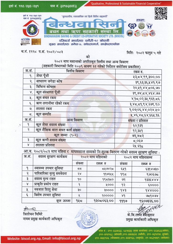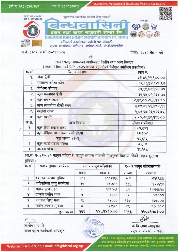 Financial Discloser of Shrawan 2082 Financial Discloser of Bhadra 2082 Financial Discloser of Ashoj 2082 Financial Discloser of Kartik 2082 Financial Discloser of Mangsir 2082 Financial Discloser of Poush 2082 Financial Discloser of Magh 2082 Financial Discloser of Falgun 2082